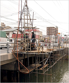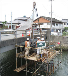 橋梁の計画・設計には、橋脚・橋台計画地点でのボーリングによる基礎地盤調査が必要です。