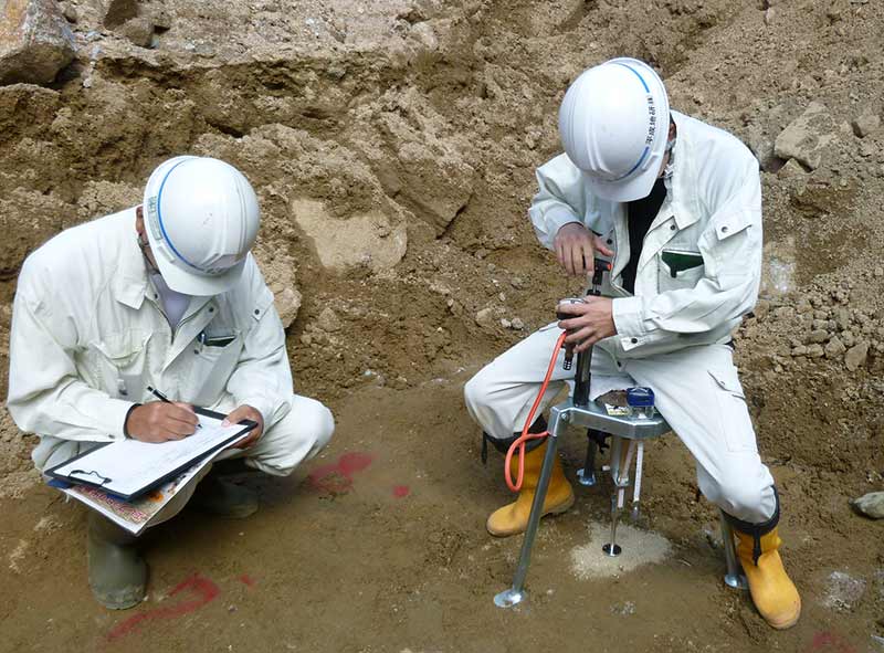 小型簡易地盤支持力試験機(エレフット)を使った地盤支持力の確認(地盤支持力試験機技術講習修了済)