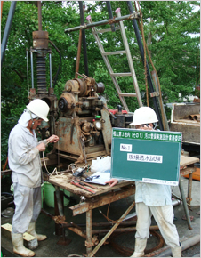 ボーリング調査は、ボーリング機械を用いて地下の土質・地質の構成と地下水位を確認し、土質・岩石試料を採取する調査です。