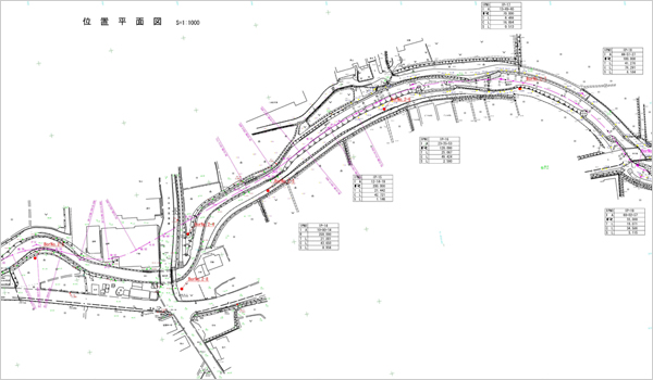 切土法面の調査、盛土基礎地盤の調査、擁壁等構造物の調査、道路トンネルおよび橋梁基礎地盤の調査など多種の地質調査があります。
